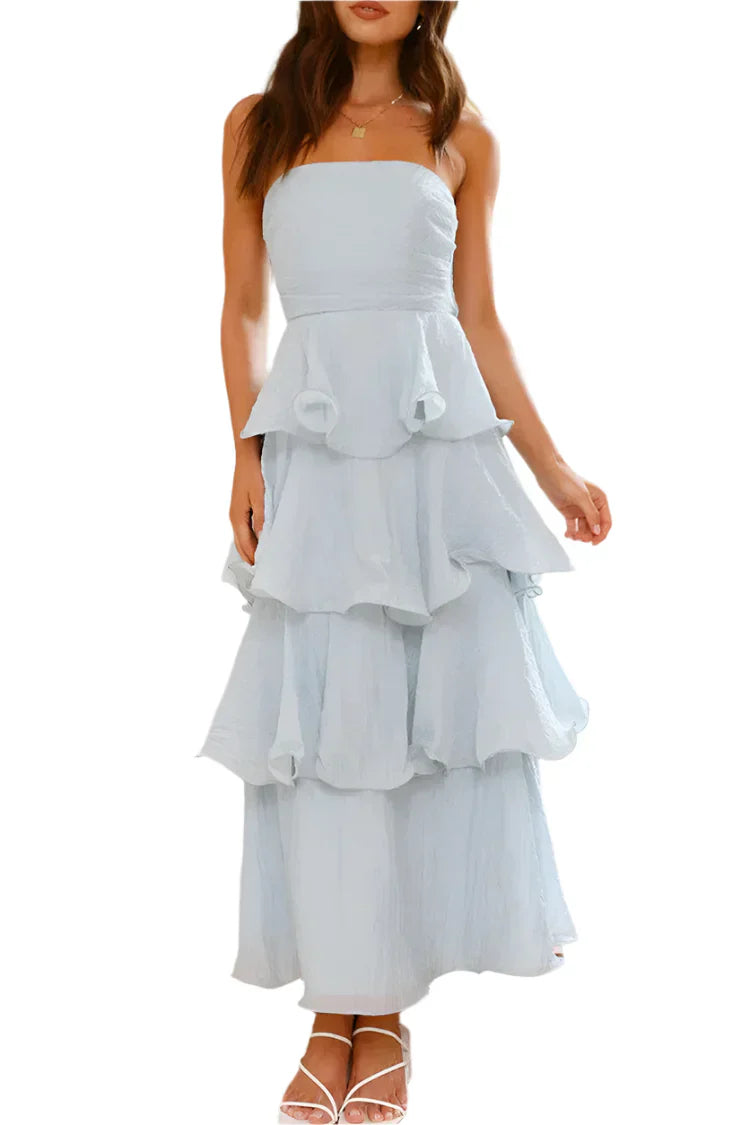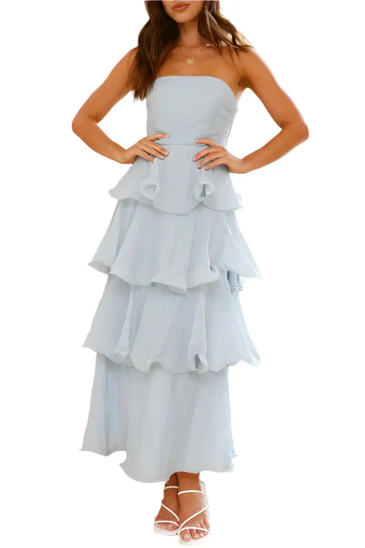 Fangen Sie Blicke ein und stehlen Sie die Show mit Ada - dem trägerlosen, rückenfreien Kleid mit verspielten Volants in Lagen. Dieses auffällige Kleid ist für die moderne Frau geschaffen, die es liebt, Eindruck zu machen. Der trägerlose und rückenfreie Schnitt strahlt Weiblichkeit und Selbstbewusstsein aus, während die geschichteten Volants einen verspielten und eleganten Akzent setzen. Egal, ob Sie die Nacht durchtanzen oder an einem stilvollen Event teilnehmen, dieses Kleid lässt Sie auf jedem Bild strahlen.