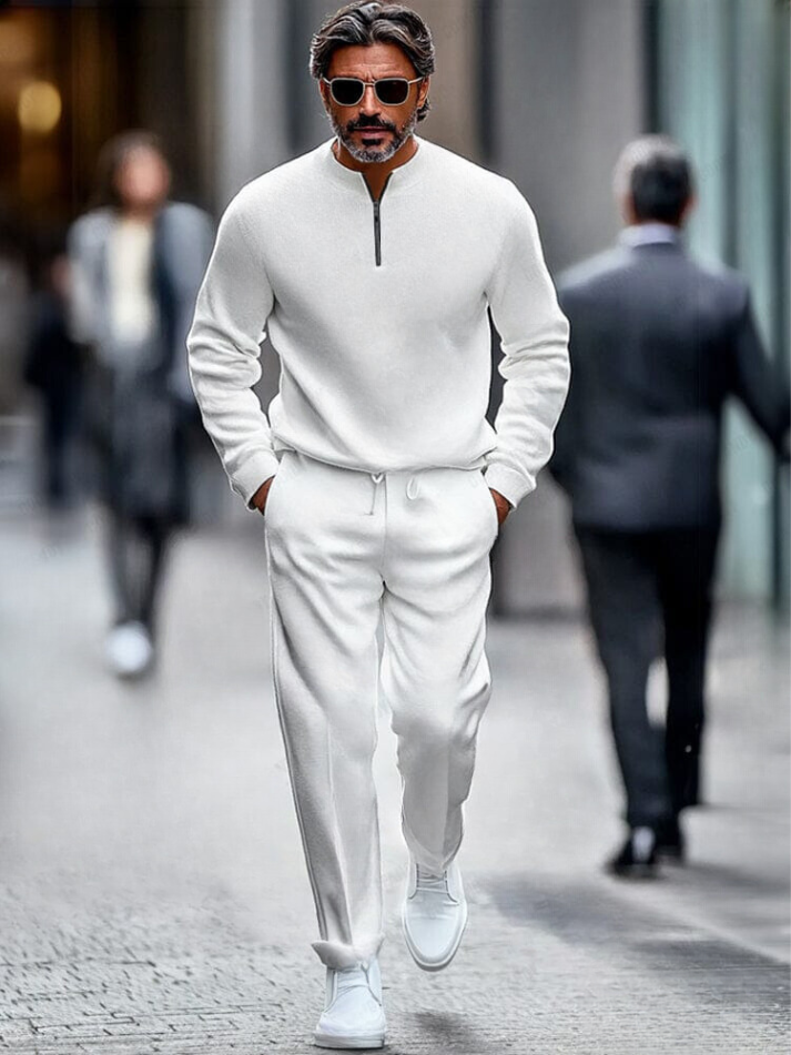 Unser beliebter Alessio-Zweiteiler kombiniert lässige Eleganz mit bequemem Tragekomfort. Ideal für Männer, die sich modisch und selbstbewusst im Alltag zeigen möchten – ob in der Stadt oder auf Reisen.
