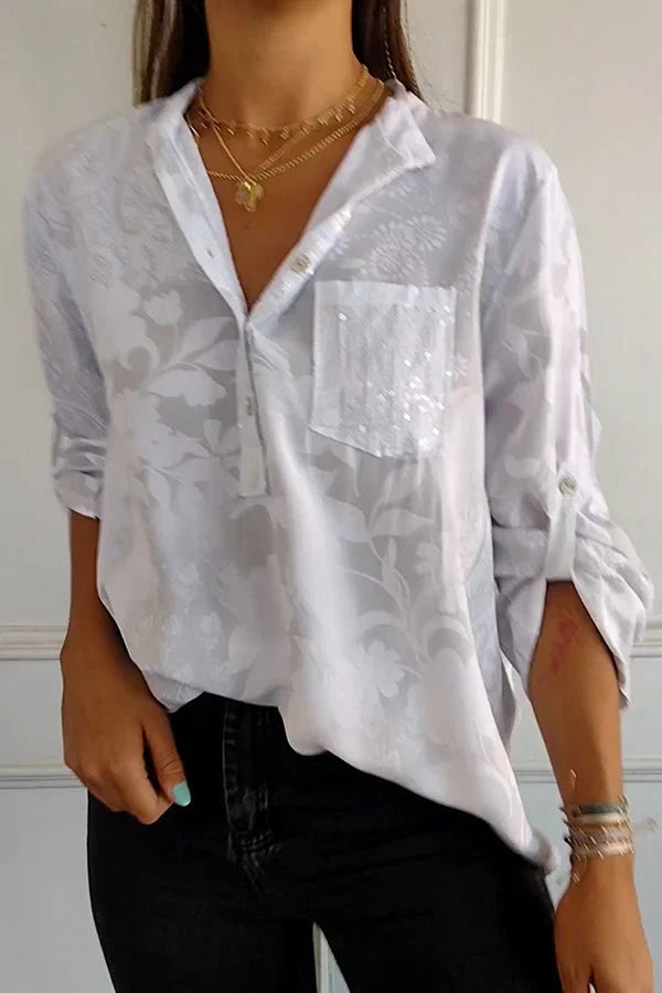 ANAHITA - WEITE TOP MIT GLÄNZENDER BRUSTTASCHE