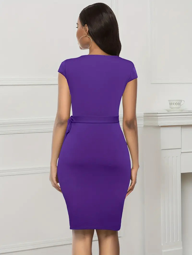 Perfekt für Bürokleidung, Geschäftstreffen oder einen Abend ausgehen, dieses klassische Midi-Kleid ist vielseitig genug, um Sie mit Leichtigkeit und Eleganz durch verschiedene Anlässe zu tragen. Kombinieren Sie es mit einem Blazer für einen professionellen Look oder fügen Sie mit Accessoires einen Farbtupfer hinzu für einen Abend in der Stadt. Vervollständigen Sie das Outfit mit Pumps.
