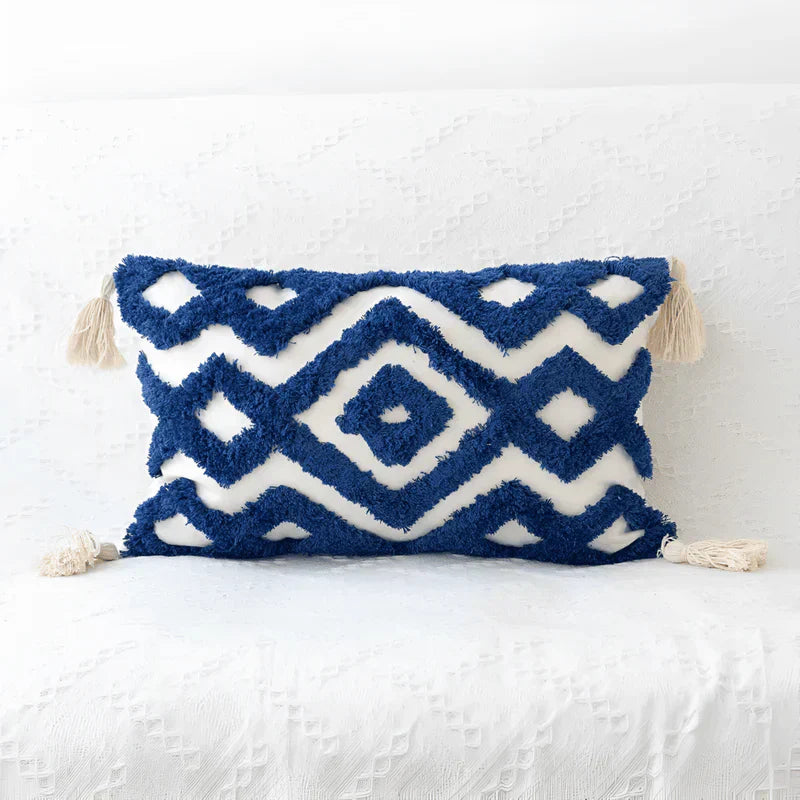 Verleihen Sie Ihrer Inneneinrichtung mit dem BohoLoom Dekokissenbezug einen Hauch von Stil, der ein auffälliges geometrisches Muster präsentiert, das den bohemian Charme nahtlos mit moderner Raffinesse verbindet. Sein kompliziertes Design bringt einen Hauch von Kunst in jeden Raum und macht es zu einem perfekten Akzent für Sofas, Betten oder Leseecken.