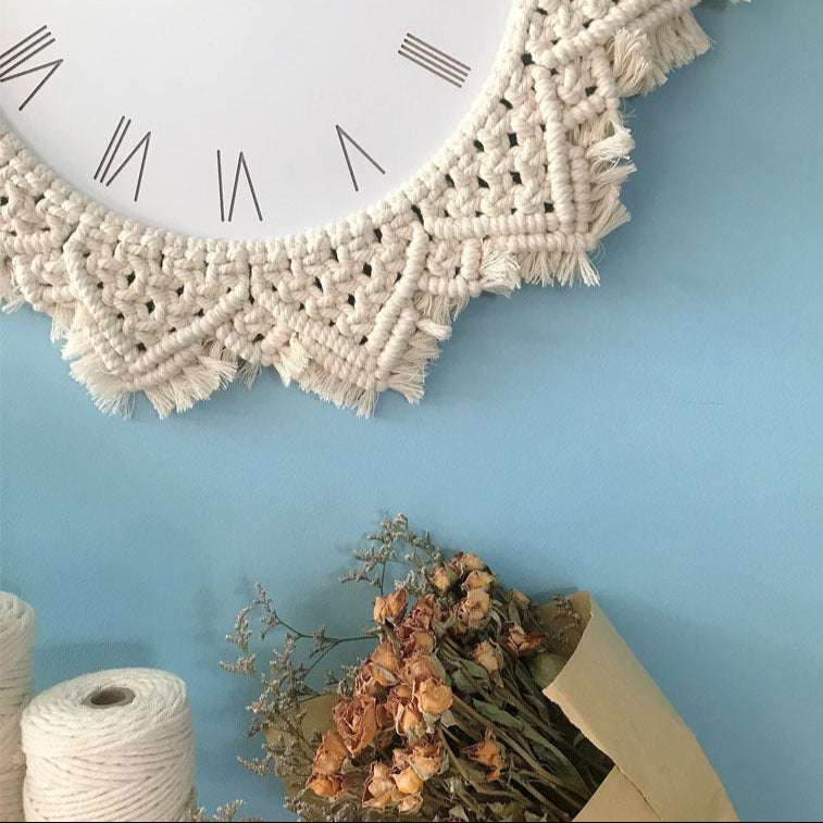 Jede Bohotime Wanduhr wird sorgfältig handgefertigt, was garantiert, dass jedes Stück einzigartig ist. Die Kombination aus weichen Baumwollkordeln und einem minimalistischen Zifferblatt schafft eine harmonische Balance zwischen Form und Funktion. Diese Uhr behält nicht nur die Zeit im Auge, sondern fügt auch eine persönliche Note zu Ihrer Inneneinrichtung hinzu.