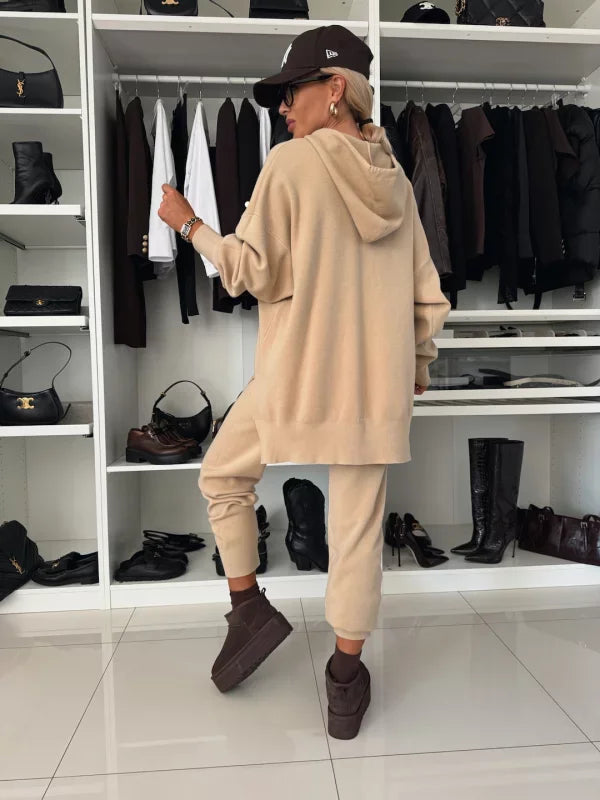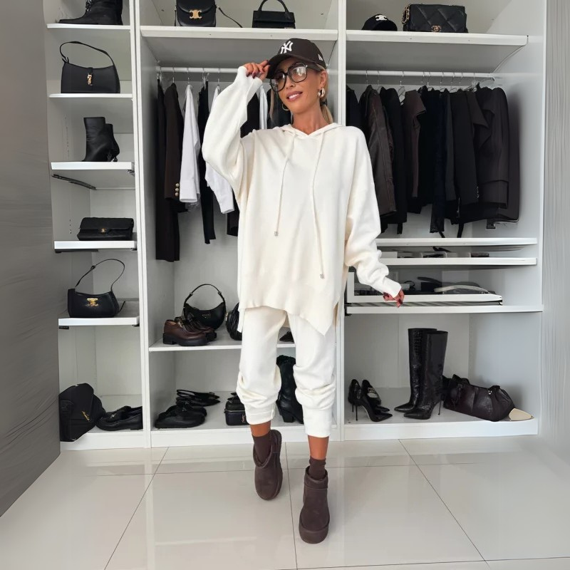 Unser beliebtes Zweiteilset ist die perfekte Mischung aus lässiger Eleganz und ultimativen Komfort. Ob Sie zu Hause entspannen oder für einen entspannten Tag ausgehen, dieses Outfit bietet eine stilvolle und dennoch gemütliche Lösung für Ihre Garderobe. Entwickelt für Frauen, die sowohl Mode als auch Funktionalität schätzen, ist es Ihr Favorit für mühelosen Chic.