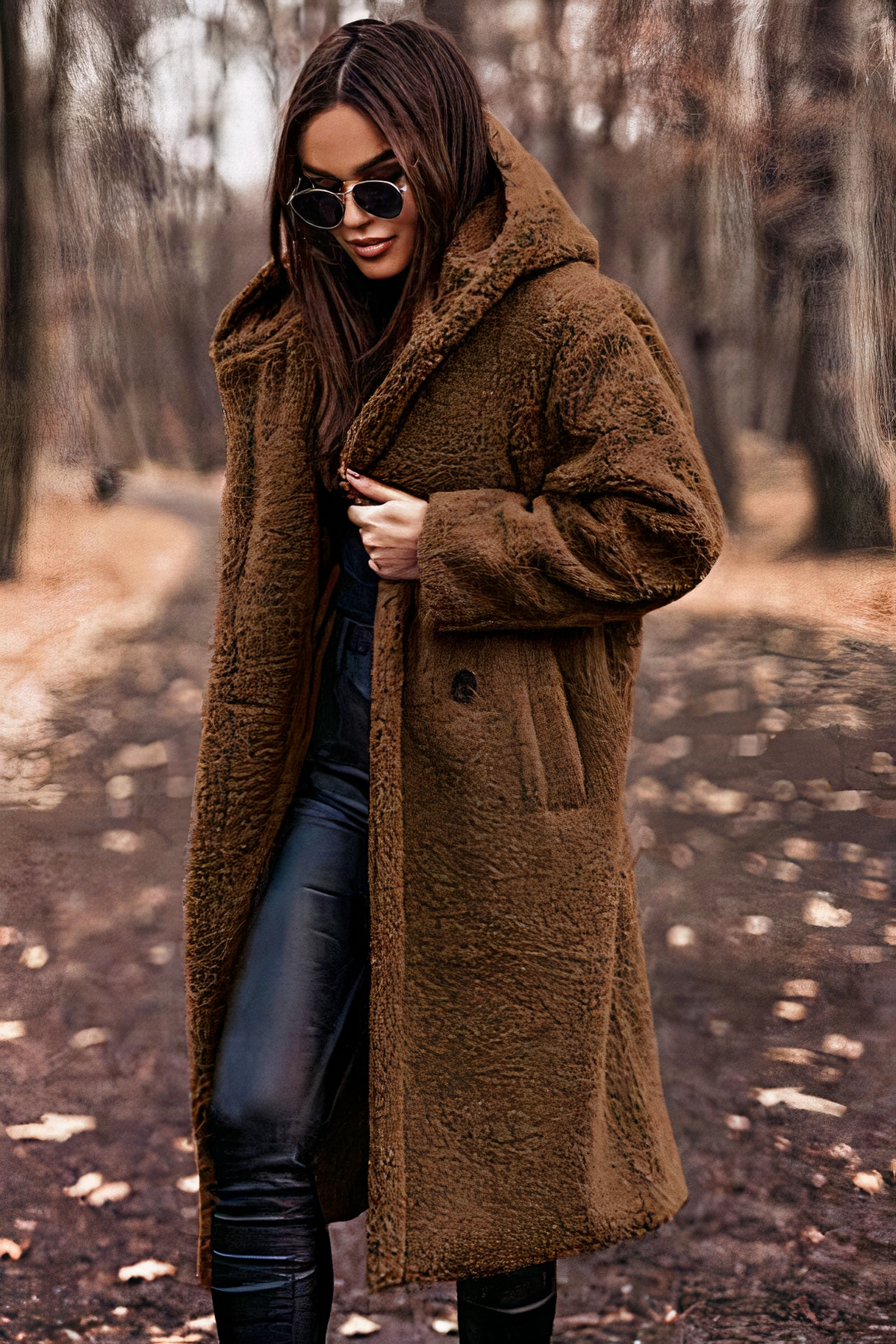 Damen bequemer Mantel mit Kapuze | Teddy