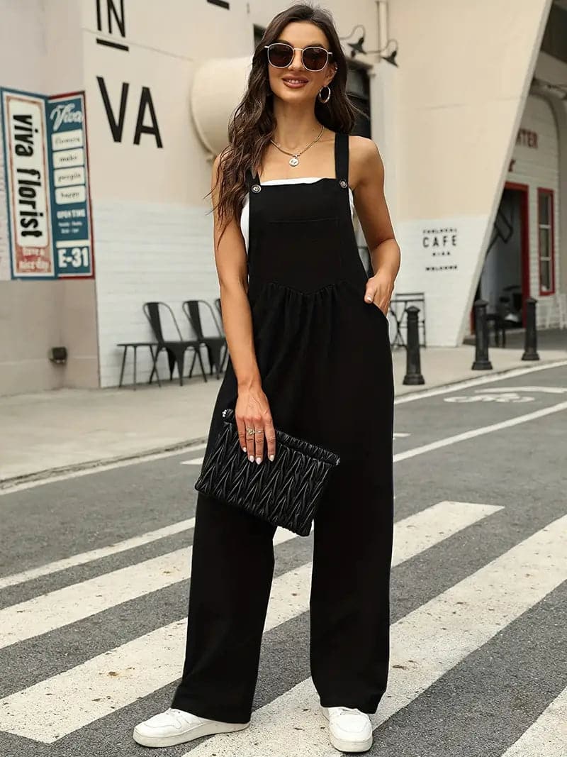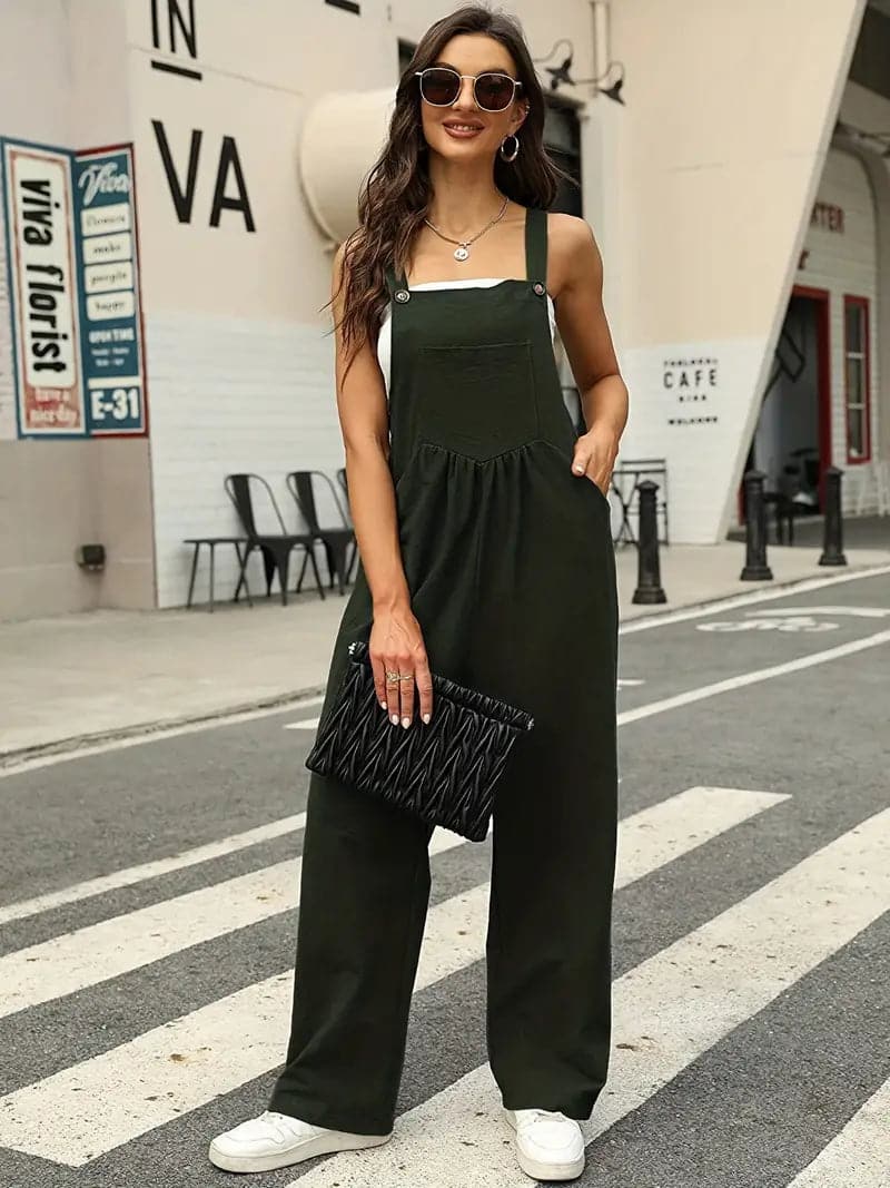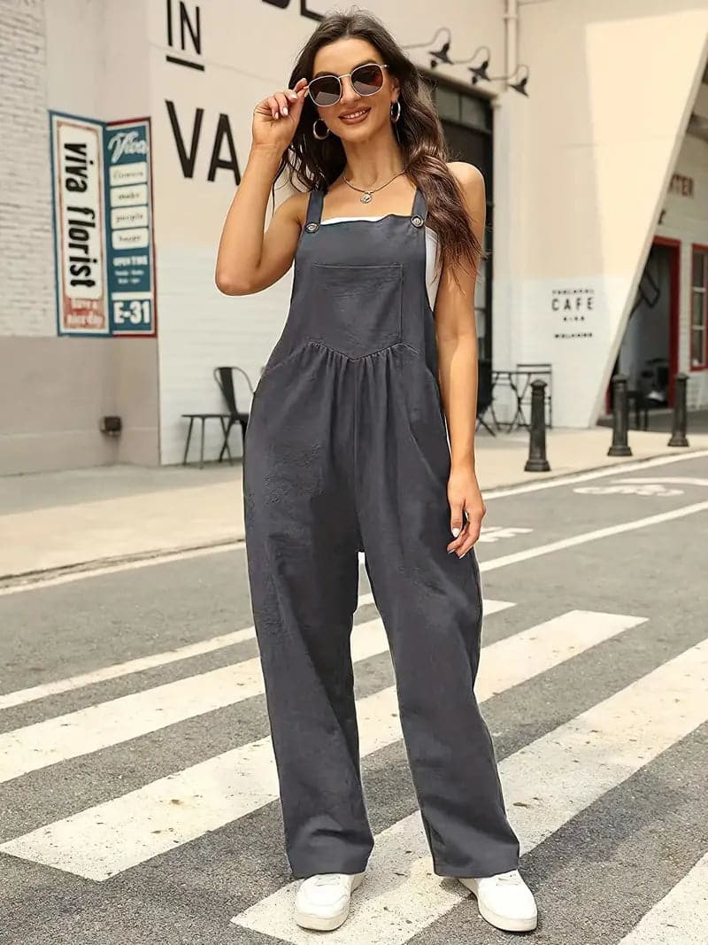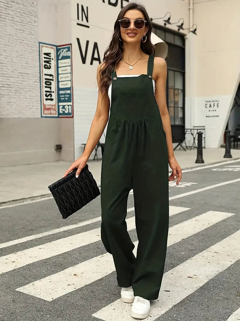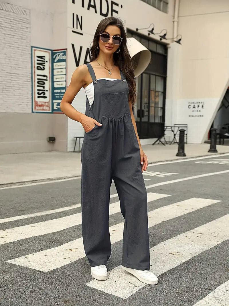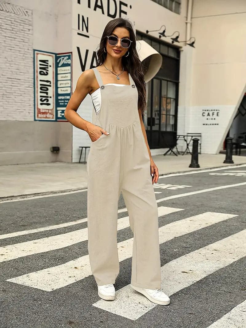 Dieser modische Overall ist das perfekte Stück für einen mühelosen Chic. Mit seinem schmeichelhaften Schnitt und der entspannten Passform ist er ideal für Tage, an denen Sie sowohl Komfort als auch Stil wünschen. Tragen Sie ihn mit Sneakern für einen lässigen Tageslook oder kombinieren Sie ihn mit eleganten Accessoires für einen Abend out. Leicht und atmungsaktiv, bietet er den ganzen Tag über Komfort, während das Design ohne zusätzliche Verschnörkelungen einen zeitlosen Reiz verleiht. Ideal für jede Garderobe, die einen Hauch von Einfachheit und Eleganz sucht.