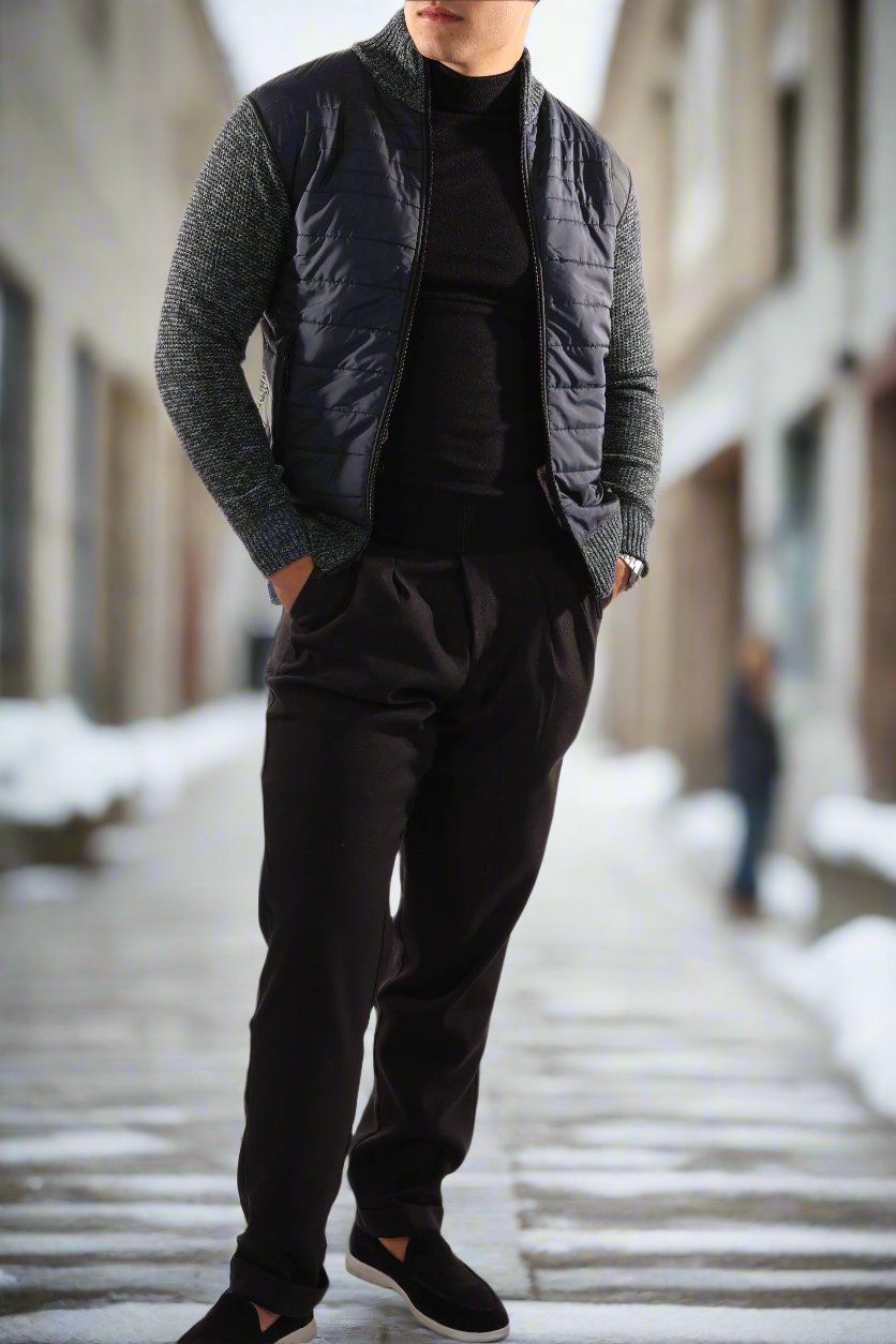 Erhöhen Sie Ihren Stil und Komfort mit der Davinci Ästhetik-Jacke, einer perfekten Mischung aus modernem Design und Funktionalität. Diese Jacke besticht durch eine elegante, gesteppte Front, die sowohl Wärme als auch einen anspruchsvollen Look bietet. Die kontrastierenden, strukturierten grauen Ärmel sorgen für einen einzigartigen Twist und garantieren, dass Sie auffallen, während Sie gemütlich bleiben.