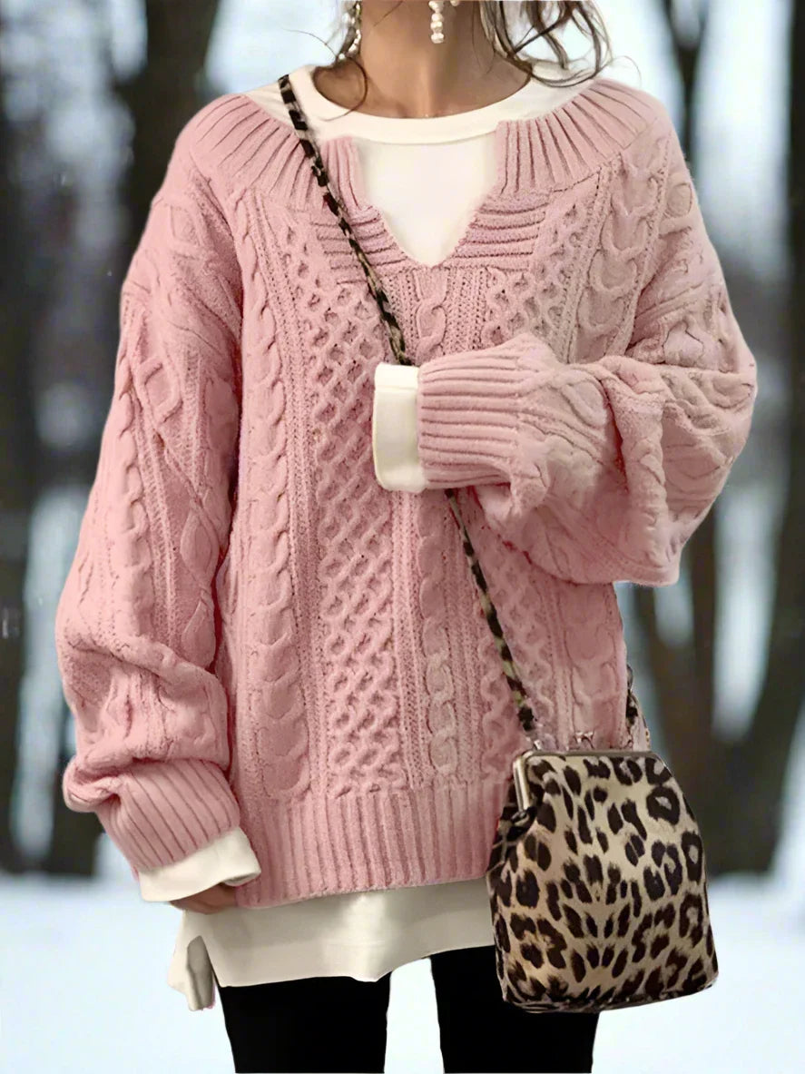 Die detaillierten Zopfmuster sorgen für visuelles Interesse und verleihen einen modischen Touch. Für einen trendigen Look betonen Sie ihn mit einer Handtasche im Leopardenprint, perfekt um ein Statement zu setzen, während Sie Ihre Essentials griffbereit halten.