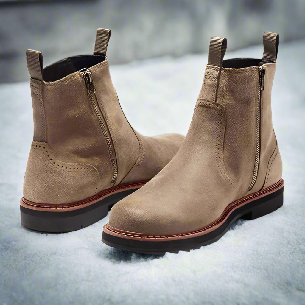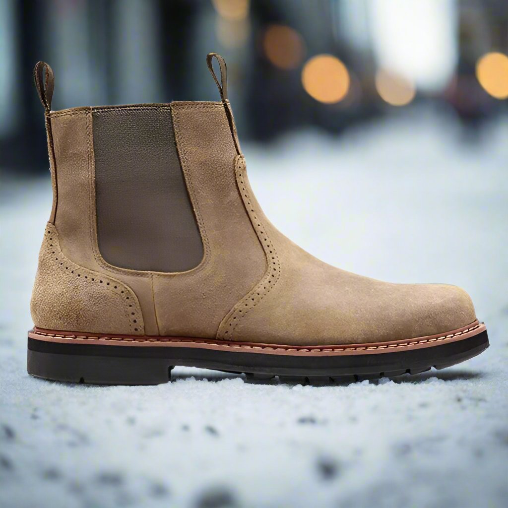 Treten Sie mit dem Chelsea Luxe Trendy Chelsea Boot für Herren stilvoll und komfortabel auf. Meisterhaft aus hochwertigem Wildleder gefertigt, bieten diese Stiefel eine schlanke und moderne Silhouette, die jedes Outfit mühelos ergänzt, egal ob Sie sich für einen Abend ausgehen oder es lässig halten.