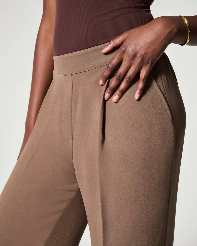Es handelt sich um eine maßgeschneiderte, aber dennoch entspannte Hose mit weitem Bein, Messerfalten vorne, leichtem Faltenwurf und einem langen, weiten Bein. Der einzigartige Funktionsbund der Hose mit weitem Bein sorgt für lang anhaltenden Komfort und viel Stretch, damit Sie sich den ganzen Tag lang wohlfühlen.