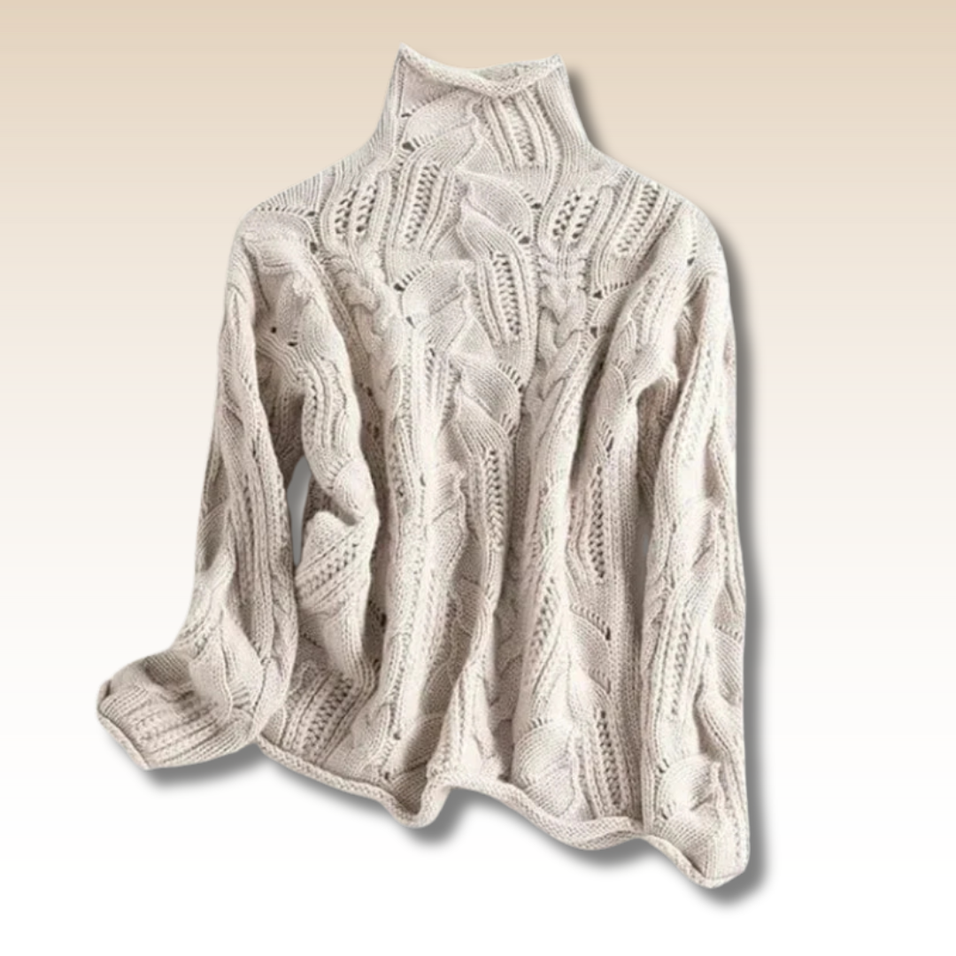 Das aufwendige Zopfstrickmuster verleiht dem Rollkragenpullover einen zeitlosen Charakter. Es ist nicht nur ein Pullover – es ist ein Detail, das Ihren gesamten Look aufwertet und Sie mühelos schick aussehen lässt.