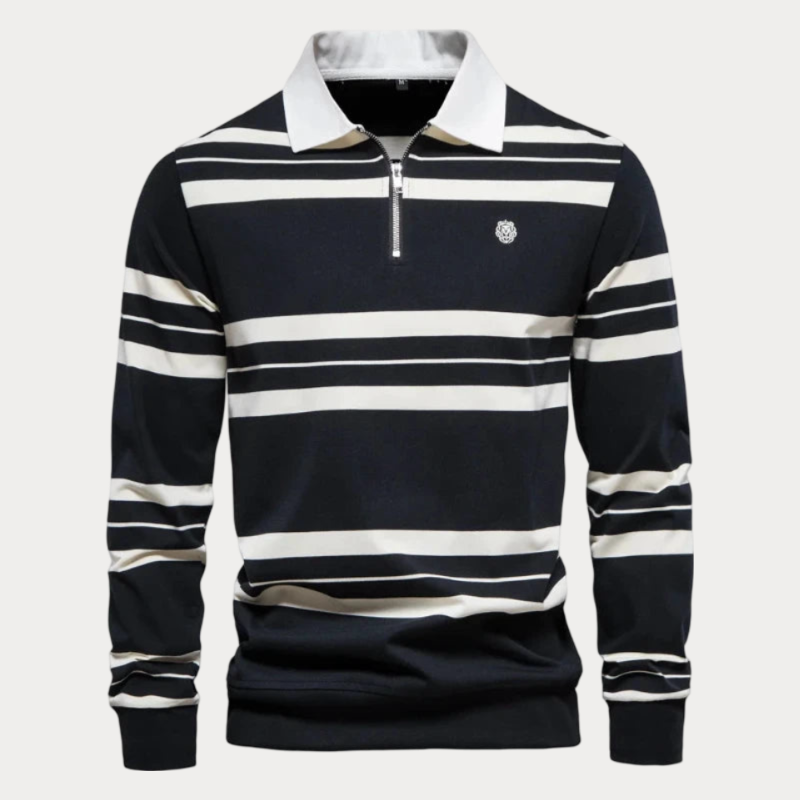 Verleihen Sie Ihrer Garderobe mit diesem gestreiften Pullover mit Kragen einen Hauch von Stil. Er eignet sich perfekt für legere Tage oder schickere Anlässe und ist mit auffälligen Streifen sowie einem eleganten Reißverschluss ausgestattet, der das An- und Ausziehen erleichtert. Der Kragen verleiht ihm einen scharfen, raffinierten Look, während die langen Ärmel für Komfort den ganzen Tag über sorgen. Ob Sie ihn leger oder elegant tragen – er ist vielseitig und stilvoll!
