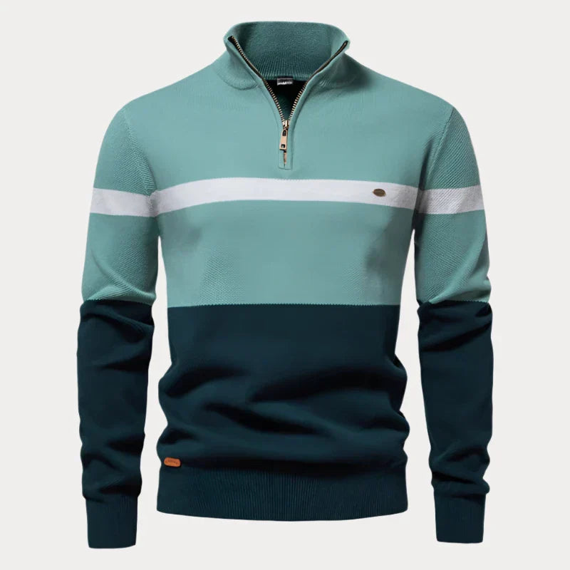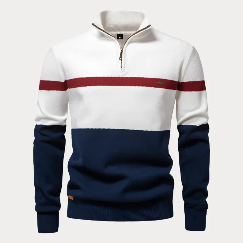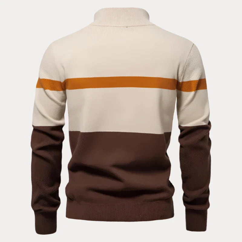 Die kräftigen Streifen verleihen ihm einen modernen Touch, während der Stehkragen eine raffinierte Note hinzufügt. Egal, ob Sie an einem lässigen Tag unterwegs sind oder etwas Stilvolles für den Abend brauchen – dieser Pullover lässt Sie sowohl gut aussehen als auch sich wohlfühlen.