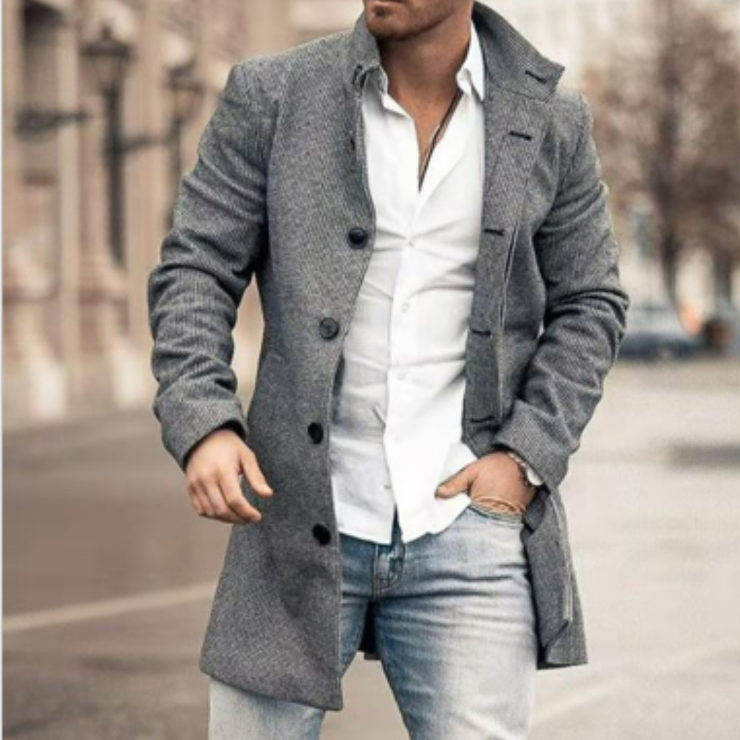 • Funktionelle Taschen: Praktische Seitentaschen bieten Wärme und Stauraum, ohne das stilvolle Aussehen des Mantels zu beeinträchtigen.