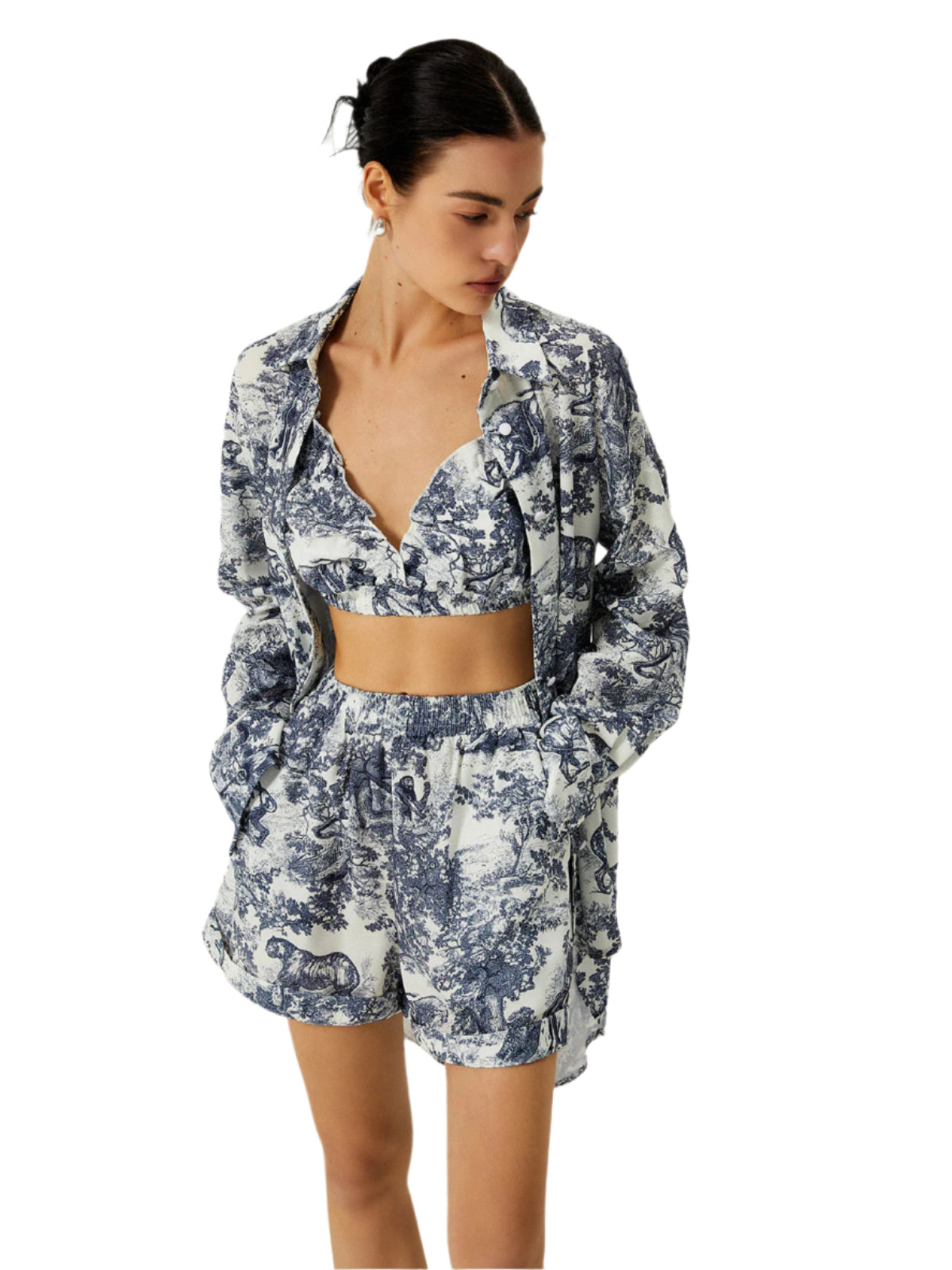 - 3-Teiliges Set: Enthält Hemd, cropped Top und Shorts für einen vollständigen Look.