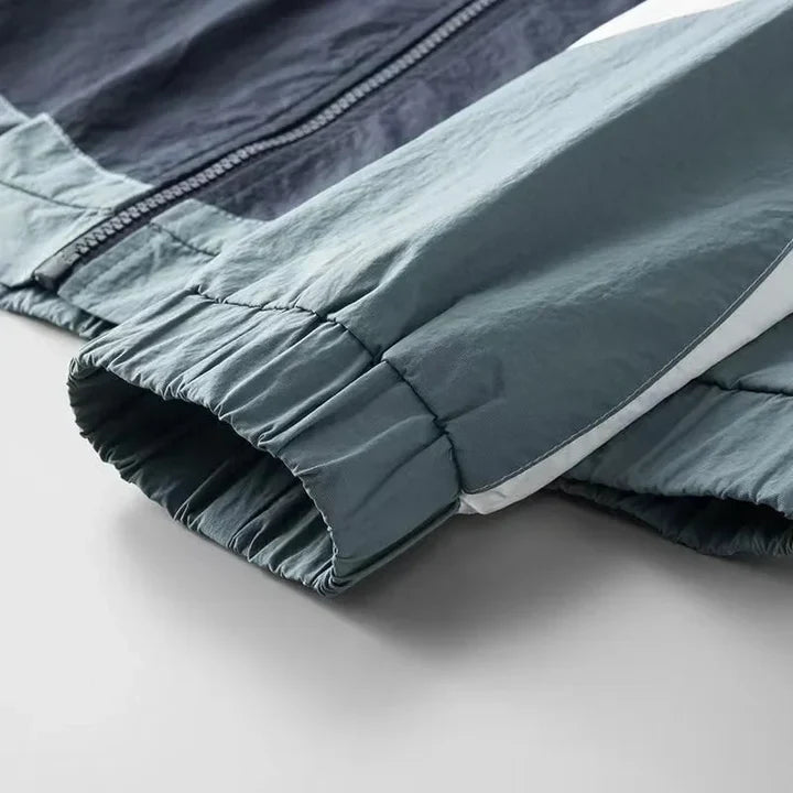 Eine wasserabweisende Außenschicht, eine Kapuze mit Kordelzug und Reißverschlusstaschen schützen vor Regenschauern, während kräftige Farbblock-Einsätze jeden Sprint durch den Nieselregen mühelos gewollt aussehen lassen.