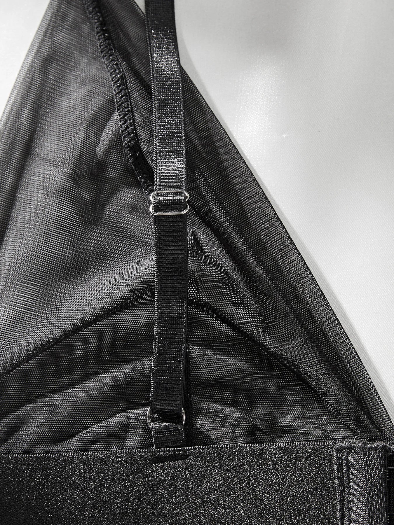 • Body aus transparentem Mesh mit vertikalen Streifen
