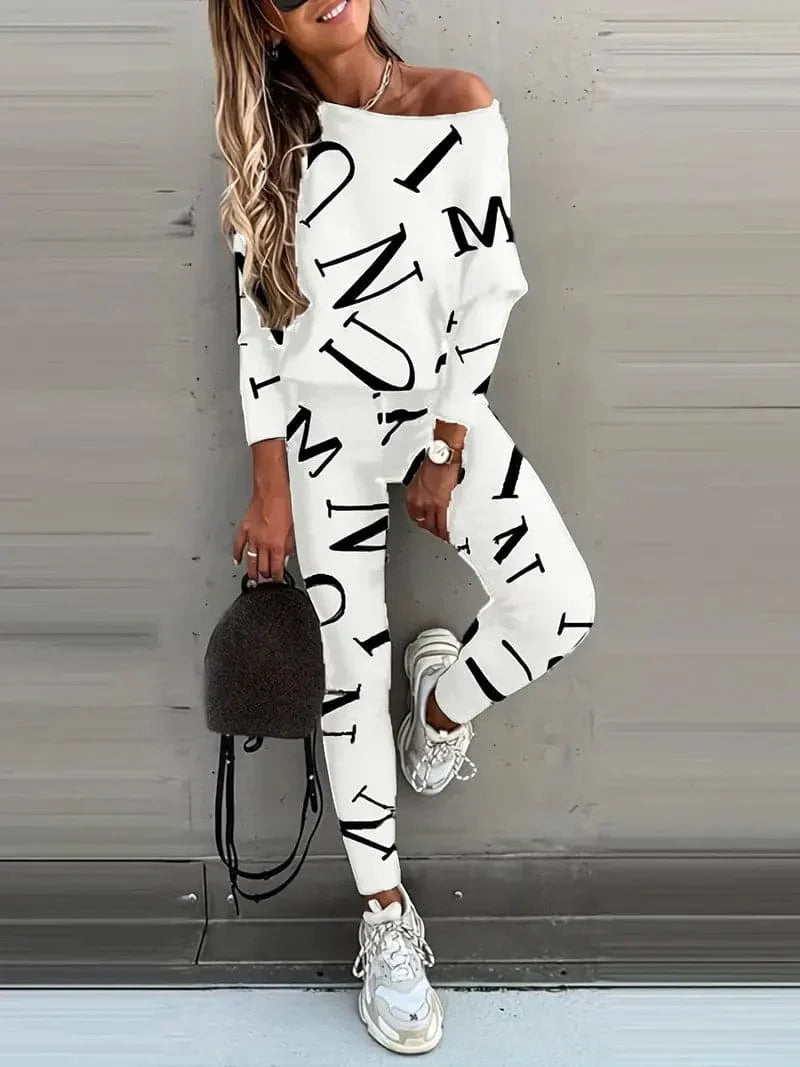 Entdecken Sie unseren mutigen und stilvollen Off-Shoulder Alphabet Print Jumpsuit! Dieses einteilige Wunder ist der Inbegriff von verspielter Mode mit einem Hauch von edgy Chic.