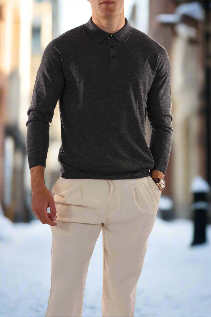 Raffiniertes, komfortables und stilvolles Langarm-Poloshirt für Herren
