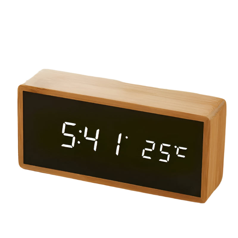 Die ReflectGlow LED-Wecker verbindet stilvolles Design mit wichtigen Funktionen für den Alltag. Mit einer spiegelnden Oberfläche, einem klaren digitalen Display und einem integrierten Temperatursensor bringt sie sowohl Form als auch Funktion in Ihr Schlafzimmer, Büro oder Flur.