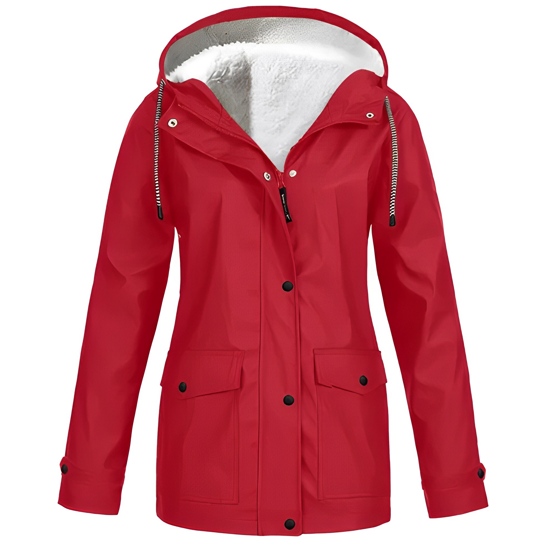 Dieser stilvolle Regenmantel für Damen kombiniert Komfort mit funktionalem Design und ist ideal für regnerische Tage. Mit einem warmen Innenfutter und einer wasserdichten Außenschicht bleibt man trocken und warm, während die Kapuze mit Kordelzug und die praktischen Taschen für zusätzlichen Schutz und Komfort sorgen.