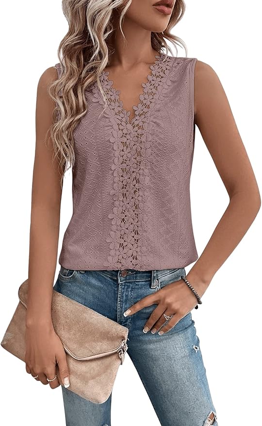 Die sanfte Farbgebung verleiht Ihrem Outfit eine subtile Farbexplosion und macht es zu einer vielseitigen Ergänzung für jede Garderobe. Material: Premium-Stoffmischung für Komfort und Haltbarkeit. Ausschnitt: V-Ausschnitt mit Spitzenbesatz. Ärmellänge: Ärmellos für ein kühles, luftiges Gefühl.