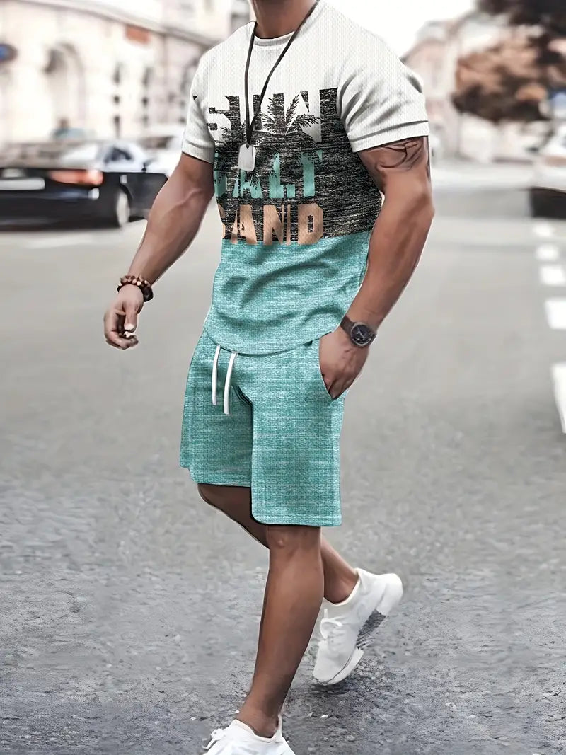 Steigern Sie Ihren Sommerstil mit unserem lebhaften Casual Beachwear Set, perfekt für sonnige Tage und entspannte Anlässe. Das auffällige Ensemble besteht aus einem atmungsaktiven T-Shirt mit kurzen Ärmeln und einem trendigen Grafikdruck, der den Geist von sonnenverwöhnten Stränden und entspannten Vibes weckt.