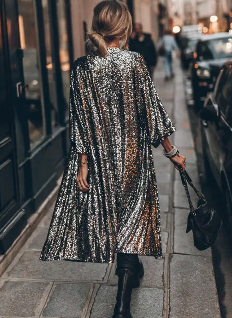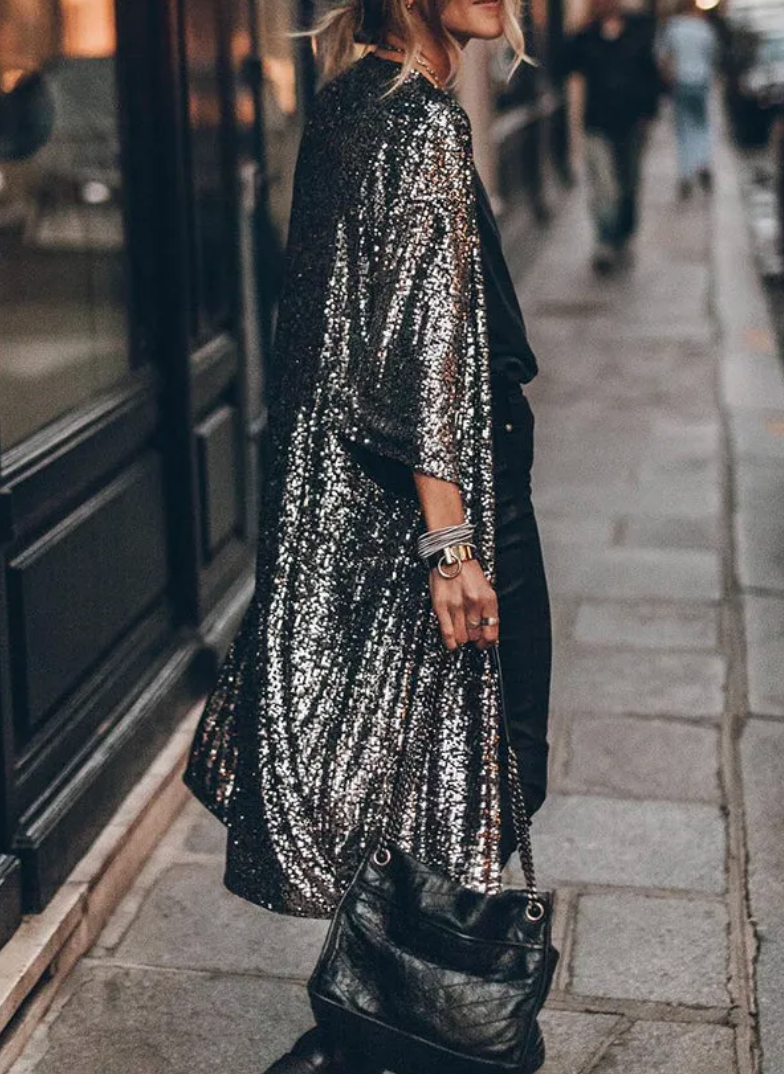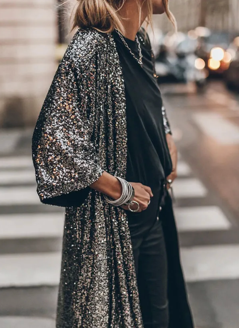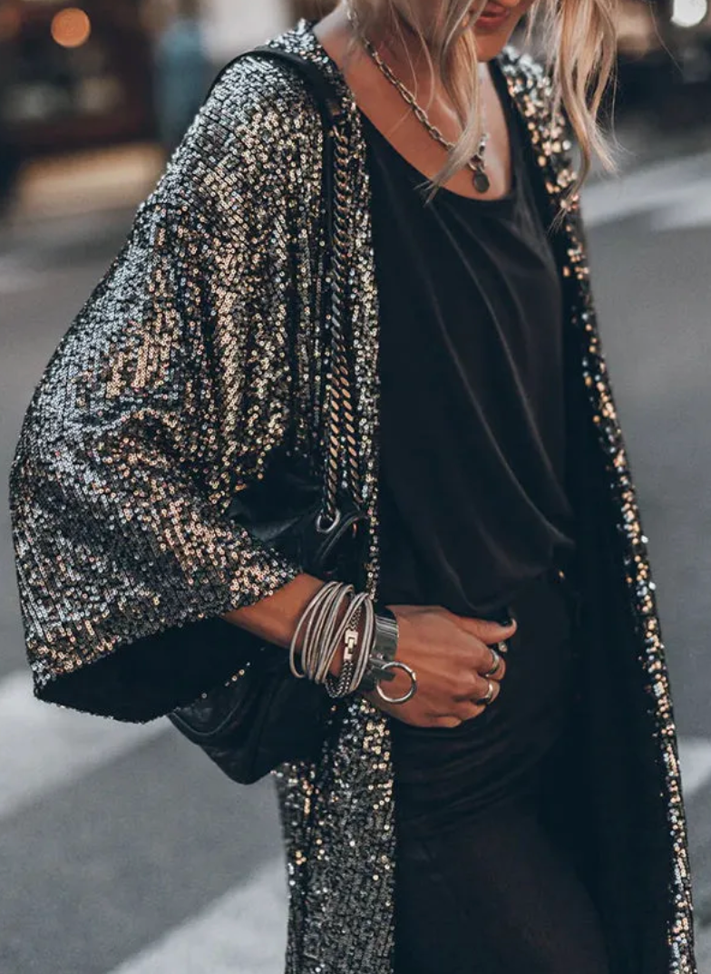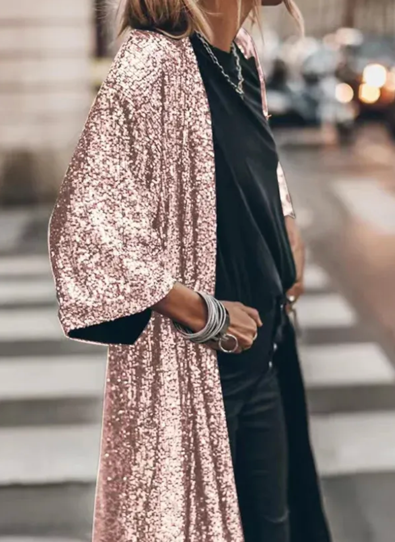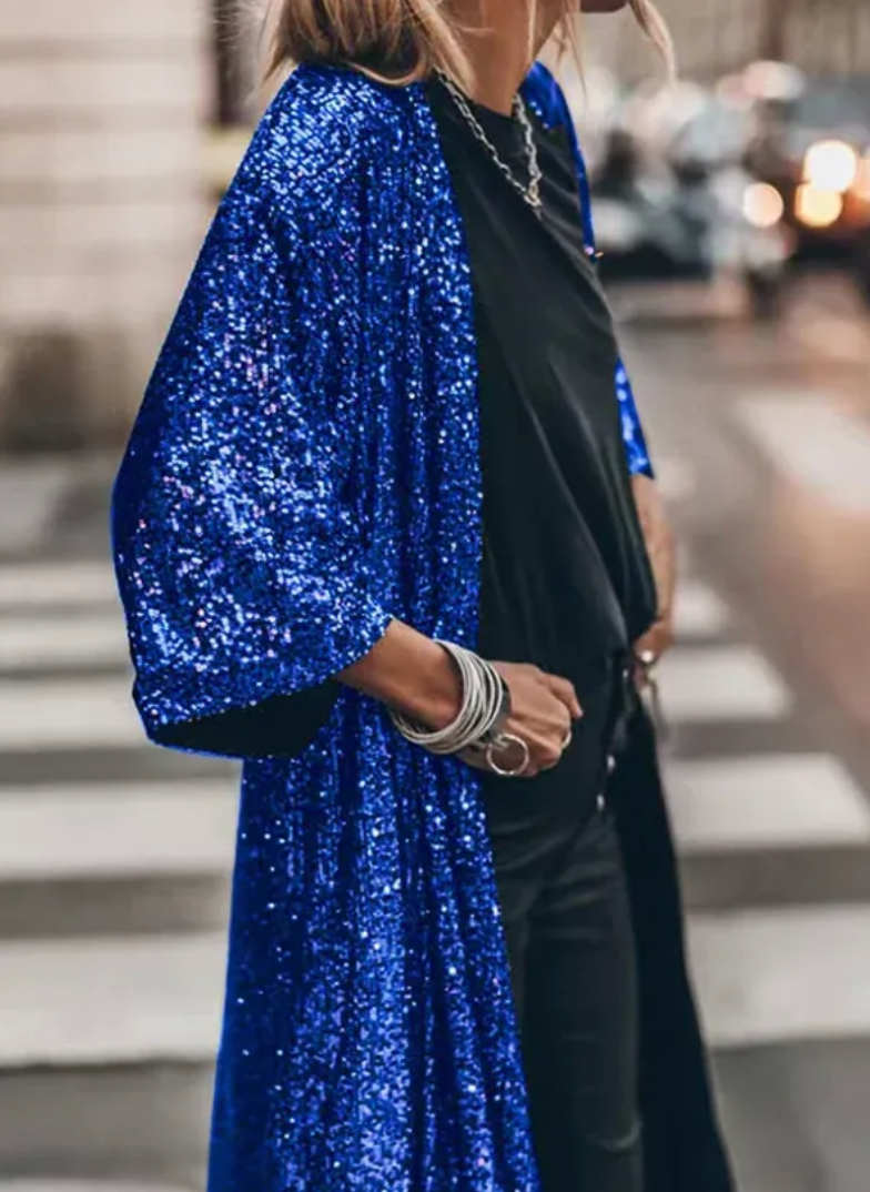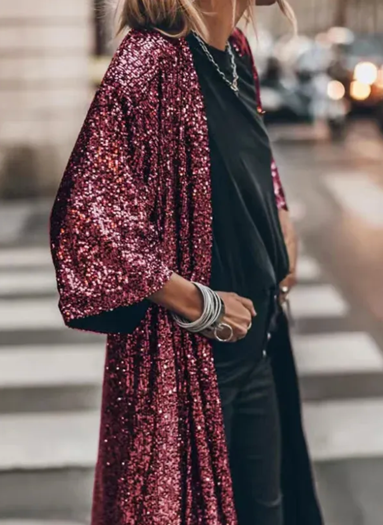Erleben Sie den Luxus unseres Glamour Viola Cardigans an kalten Tagen!